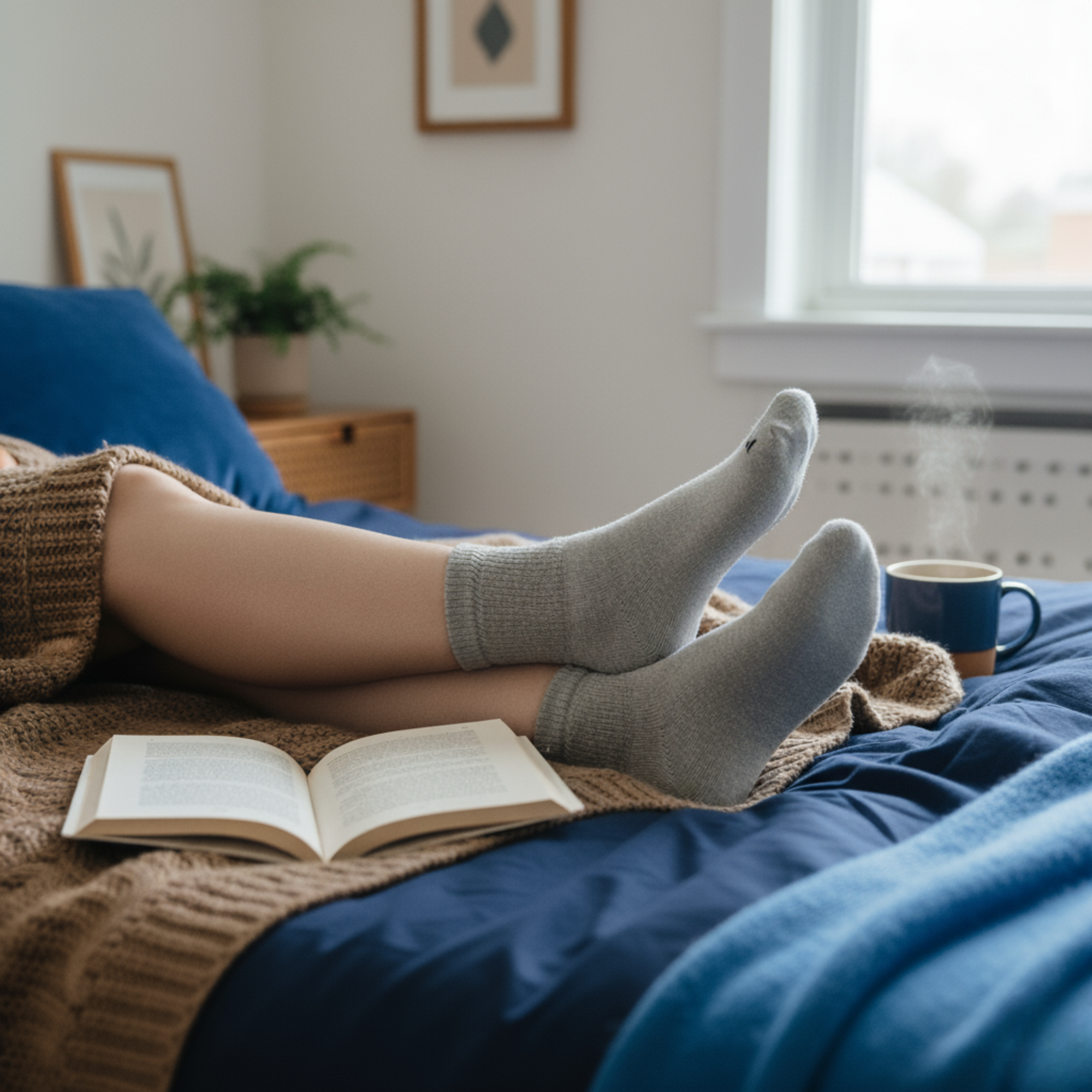 Araam Socks is designed with breathable, circulation-friendly fibers that keep your feet warm, but never hot— helping your body relax naturally before bed.