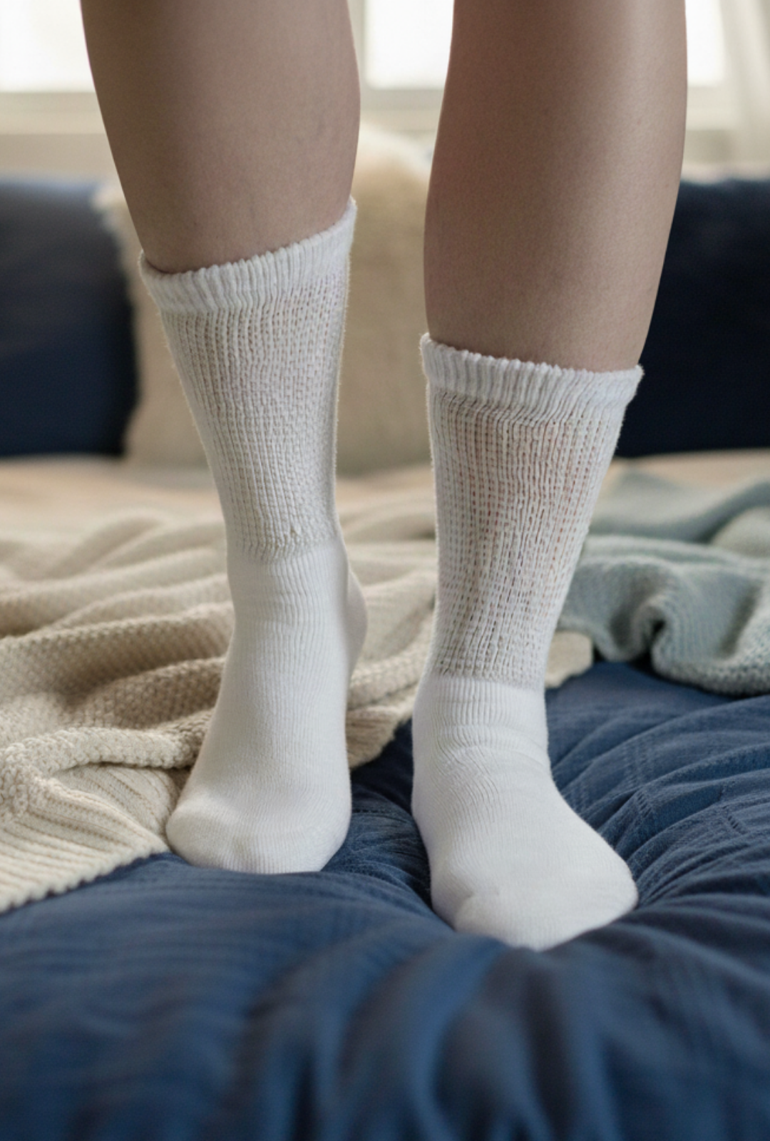 The soft, non-restrictive cuff encourages healthy blood flow, easing tension in your legs and reducing nighttime swelling. Our ring-spun cotton blend keeps your feet comfortably dry and cozy, creating the perfect balance of warmth and airflow for restful sleep.